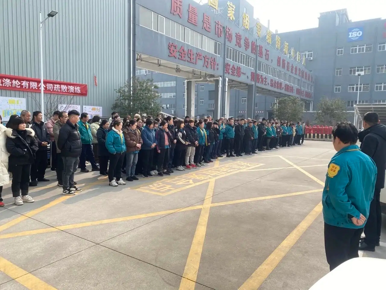 Alohan'ny fanazaran-tena, ny mpiasa rehetra mifandraika amin'izany toy ny vondrona komandin'ny drill, ny vondrona evacuation vonjy maika, ary ny vondrona mpamonjy voina dia tokony hiasa, miaraka amin'ny fizarana mazava ny asa sy ny andraikiny. Taorian'ny nanombohan'ny fanazaran-tena dia nanamarika ny fahatapahan-jiro tampoka ny vondrona orinasa polyester ary nampihetsika ny rafitra fanairana maika. Nahazo toromarika momba ny fivoahana amin'ny fampielezam-baovao maika ny vondrona orinasa Lida, ary nandamina haingana ny mpiasa ny mpitarika ny ekipa tsirairay mba hivory sy hifindra any amin'ny toerana azo antoka araka ny famantarana ny fialana. Ny mpiasa eo an-toerana dia nitarika ny fivoahana isaky ny fidirana amin'ny tohatra. Rehefa tonga teo amin’ny toeram-pivoriana ireo mpiasa dia niantso avy hatrany ny lehiben’ny ekipa mba hanamarina ny isan’ny olona ary nanao tatitra tamin’ny komandin’ny mpamonjy voina. Teo amin'ny 1 minitra sy 50 segondra teo ho eo ny fotoana fandroahana ho an'ny vondron'orinasa polyester, ary 2 minitra sy 10 segondra teo ho eo ho an'ny tarika Lida.